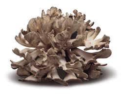 Maitake means 'dancing mushroom' in Japanese; a name for which at least two explanations have been offered. One is that the overlapping leaflets of the mushroom resemble butterflies in a wild dance. Another is that ancient Japanese fortunate enough to find Maitake growing wild would dance with joy because it could be traded for its weight in silver. Another common name for Maitake is Hen-of-the-Woods. Maitake mushrooms form a brown to gray cluster of petals or fronds on a fused, central stalk. Medicinally, maitake is best known for its immune-enhancing properties. It has been recognized to be helpful in the treatment and prevention of certain kinds of cancers, high blood pressure, diabetes and high cholesterol.